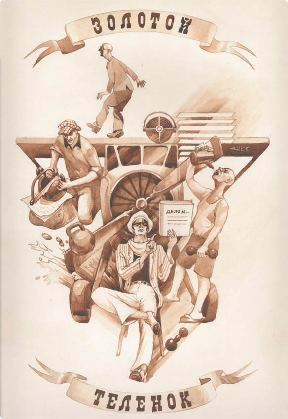 Доброго Вам времени суток. Пишу по поводу следующего http://lib.ru/ILFPETROV/telenok.txt Просматривая и сравнивая с печатным изданием, по поводу того что фрагмент утерян, во второй главе. Там такая фраза: "... возчик в рыбачьей брезентовой прозодежде ВЕЗ не рельс, а оглушительную музыкальную ..." Скорее всего раньше была допущена ляпа в слове "вез" (а набрали "без") Артем. Илья Ильф и Евгений Петров. Золотой теленок --------------------------------------------------------------- © Иллюстрации: Евгений Штыров, акварель Email: eshtyrov@mail.ru, tel.(8462)41-93-53 --------------------------------------------------------------- ОТ АВТОРОВ Обычно по поводу нашего обобществленного литературного хозяйства к нам обращаются с вопросами вполне законными, но весьма однообразными: "Как это вы пишете вдвоем? " Сначала мы отвечали подробно, вдавались в детали, рассказывали даже о крупной ссоре, возникшей по следующему поводу: убить ли героя романа "12 стульев" Остапа Бендера или оставить в живых? Не забывали упомянуть о том, что участь героя решилась жребием. В сахарницу были положены две бумажки, на одной из которых дрожащей рукой был изображен череп и две куриные косточки. Вынулся череп-и через полчаса великого комбинатора не стало. Он был прирезан бритвой. Потом мы стали отвечать менее подробно. О ссоре уже не рассказывали. Еще потом перестали вдаваться в детали. И, наконец, отвечали совсем уже без воодушевления: -- Как мы пишем вдвоем? Да-так и пишем вдвоем. Как братья Гонкуры. Эдмонд бегает по редакциям, а Жюль стережет рукопись, чтобы не украли знакомые. И вдруг единообразие вопросов было нарушено. -- Скажите, -- спросил нас некий строгий гражданин из числа тех, что признали советскую власть несколько позже Англии и чуть раньше Греции, - скажите, почему вы пишете смешно? Что за смешки в реконструктивный период? Вы что, с ума сошли? После этого он долго и сердито убеждал нас в том, что сейчас смех вреден. -- Смеяться грешно? - говорил он. -- Да, смеяться нельзя! И улыбаться нельзя! Когда я вижу эту новую жизнь, эти сдвиги, мне не хочется улыбаться, мне хочется молиться! -- Но ведь мы не просто смеемся, - возражали мы. - Наша цель-сатира именно на тех людей, которые не понимают реконструктивного периода. -- Сатира не может быть смешной, - сказал строгий товарищ и, подхватив под руку какого-то кустарябаптиста, которого он принял за стопроцентного пролетария, повел его к себе на квартиру. Повел описывать скучными словами, повел вставлять в шеститомный роман под названием: "А паразиты никогда! " Все рассказанное-не выдумка. Выдумать можно было бы и посмешнее. Дайте такому гражданину-аллилуйщику волю, и он даже на мужчин наденет паранджу, а сам с утра будет играть на трубе гимны и псалмы, считая, что именно таким образом надо помогать строительству социализма. И все время, покуда мы сочиняли "Золотого теленка", над нами реял лик строгого гражданина. -- А вдруг эта глава выйдет смешной? Что скажет строгий гражданин? И в конце концов мы постановили: а) роман написать по возможности веселый, б) буде строгий гражданин снова заявит, что сатира не должна быть смешной, - просить прокурора республики привлечь помянутого гражданина к уголовной ответственности по статье, карающей за головотяпство со взломом. И. ИЛЬФ. Е. ПЕТРОВ  * ЧАСТЬ ПЕРВАЯ. ЭКИПАЖ АНТИЛОПЫ *  Переходя улицу, оглянись по сторонам (Правило уличного движения) ГЛАВА I. О ТОМ, КАК ПАНИКОВСКИЙ НАРУШИЛ КОНВЕНЦИЮ Пешеходов на