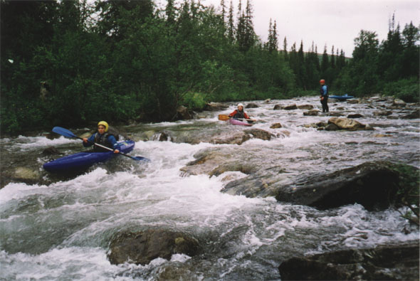 Выбор оптимального судна для такого похода задача весьма непростая, которая, видимо, не имеет точного решения. Наиболее подходящими можно считать не очень длинные полиэтиленовые каяки (Reflex, например, явно был великоват), каркасные каяки, ну и, наверное КНБ (с большими оговорками). Таймень с не облегченной (резиновой) шкурой - лодка явно не подходящая, катамараны тоже - речка слишком мелкая и каменистая, расход небольшой.
