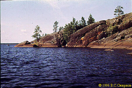 Порог No27 (Iа, 100 м). Мелковатая небыстрая шивера. Сходу. Через 30--40 мин спокойного сплава начинается дельта (острова, протоки). Еще через 5 мин -- выход в оз. Бол. Рогозеро.