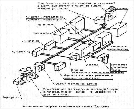 Мы не останавливаемся на описании устройства этой машины, известном лишь в общих чертах по нескольким беглым обзорам, имеющимся в литературе, и на принципиальных недостатках ее и ее предшественника - Гарвардской машины. Существенно то, что в последнее время построением новых усовершенствованных машин занято несколько организаций в Америке. Строятся новые машины в Гарварде, две машины для "Бюро стандартов" и ряда университетов, институтов и специальных исследовательских центров армии и флота. Приступили к сооружению подобной машины в Англии, проектируется машина и во Франции.