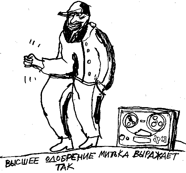 Если митек не ведет разговор сам, он сопровождает каждую фразу рассказчика заливистым смехом, ударами по коленям или ляжкам или выкриками: Улет! Обсад! или же напротив горестными восклицаниями: