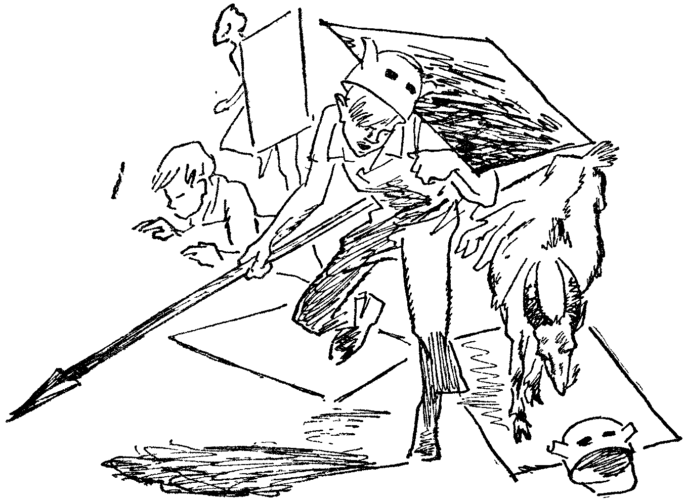 -- с подозрительным нетерпением спросила Виктория. Толька мстительно сказал из-под чайника: -- Будем вашей краской наши щиты красить. Чтоб пятен не было. Чтоб одинаковые были. А остаточек вам вернем, так и быть. -- Чтоб вы подавились этим остаточком! -- с восторгом в душе воскликнула Вика. И друзья посыпались с забора, чтобы враг не заметил их ликования. Но они еще не были уверены до конца. Они сидели на Викином крыльце и ждали, и грызла их тревога. В два часа дня появились в калитке два Джонниных пятилетних разведчика. Джонни, сдерживая нетерпение, пошел навстречу. -- Ну? -- Красят! -- отчеканили разведчики. -- Красят, -- небрежно сообщил Джонни, возвратившись на крыльцо. -- Джонни, ты великий человек, -- проникновенно сказал Сережка. -- Мы подарим тебе Меркурия, -- снова пообещал Борька. Стасик в немом восторге встал на руки. А Вика... Ну что возьмешь с девчонки! На радостях она чмокнула героя в перемазанную краской щеку. Джонни шарахнулся и покраснел... -- Ой! -- спохватился Стасик и встал на ноги. -- Борька, пора! -- Куда вы? -- спросил Сережка. -- Липушку на выпас, -- ласково сказал Борька. -- Липушку на тренировочку, -- нежно добавил Стасик. -- Тренировка -- залог победы. -- Вы там не очень, -- предупредил Сережка. -- А то как снизит удои, да как запрет ее от нас бабка... -- Снизит?! -- возмутился Стасик. -- У нас режим! Программа! Распорядок. Все по-научному! В тот же вечер Стасик Дорин бесстрашно явился во двор к Самохиным. В одной руке он держал пакет с пластилиновой печатью, в другой -- лыжную палку с белым полотенцем. -- Что надо? -- нелюбезно спросил предводитель викингов, появляясь на крыльце. Стасик повыше поднял флаг и протянул пакет. Толька с сожалением поглядел на полотенце. Никакие законы не разрешали отлупить посла. А так хотелось! Он вздохнул, разорвал пакет и вынул бумагу. "Вызываем на бой!!! Послезавтра. В четверг. В девять часов утра", -- прочитал он. Придраться было не к чему: ни одного оскорбительного выражения. -- Будет ответ? -- вежливо спросил Стасик. -- Будет,-- сказал Самохин. -- Послезавтра в девять. Вам понравится. -- Вот и хорошо, -- сказал Стасик. Утро решающей битвы было безоблачным, синим, ослепительным. Не воевать бы, а радоваться. Но суровые покорители северных морей, повелители фиордов, грозные бойцы в рогатых шлемах созданы не для мирной жизни. Их дни проходят в боях... Правда, на этот раз они знали, что больших подвигов совершить не удастся. Велика ли заслуга -- обратить в бегство маленький, почти беззащитный отряд! Но проучить непокорного врага следовало, и ровно в девять боевой четырехугольник викингов показался на улице. Заполыхали на солнце оранжевые щиты. И вот викинги увидели противника. -- Тихо! -- сурово сказал Самохин, потому что в рядах началось неприличное, подрывающее дисциплину веселье. Ну, а как было не веселиться? Противник был такой беспомощный, потешный! Пять человек стояли поперек дороги, вооруженные чем попало. У девчонки вместо щита была деревянная крышка от бочки. Джонни Карапуз держал игрушечный автомат, бесполезный в настоящем бою. У Сережки Волошина вообще не видно было оружия. Лишь братья Дорины укрылись за настоящими, как у викингов, щитами. Пятерка эта растянулась в редкую шеренгу, только Борька и Стасик стояли рядом, сдвинув некрашеные щиты. -- Сейчас побегут, -- пропищал Пескарь. -- Не будет никакого боя. Но противник не бежал. -- Может быть, они реши