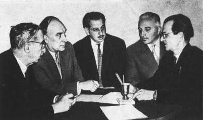 С.И. Судариков, В.В. Похлебкин, В.Д. Горчев; стоят - Г.А. Хавкин, П.А.