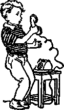 Мишка схватил ложку и стал кашу обратно в кастрюлю впихивать. Мял ее, мял, а она будто пухнет