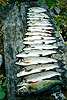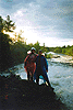 В конце порога, который мы обнесли по левому берегу, нас порадовала форель, которая, похоже, соревновалась между собой в высоте прыжка из воды. Играла вся река. Зрелище фантастическое. Нечто подобное я видел на Белой (Башкирия) в 1982 году, когда из реки начался вылет поденки. Там веселился хариус и мы вместе с ним, т.к. он ловился на голый крючок, касающийся поверхности воды. Да и сейчас мы половили удачно, правда, на мелкую блесенку.