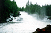 Есть возможность делать обнос по правому берегу, по тропе, которая идет вдоль берега, но это долго. Лучше пройти между каменюками, и причалить к берегу. Там короткий обнос (50 м) в залив Винчи ниже порога. Мы делаем совсем по-другому. Осматриваем порог, затем делаем короткий обнос по левому берегу основного, мощного короткого слива, бьющего в мост, и встаем в порог. Порог имеет вид подковы и проходится по основной струе, с уворачиванием от камней.