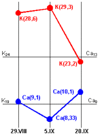 Изменения величин "K" и "Ca"