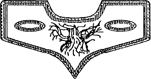 и сине-красная полоса вдоль острой кромки сплюснутой головной части