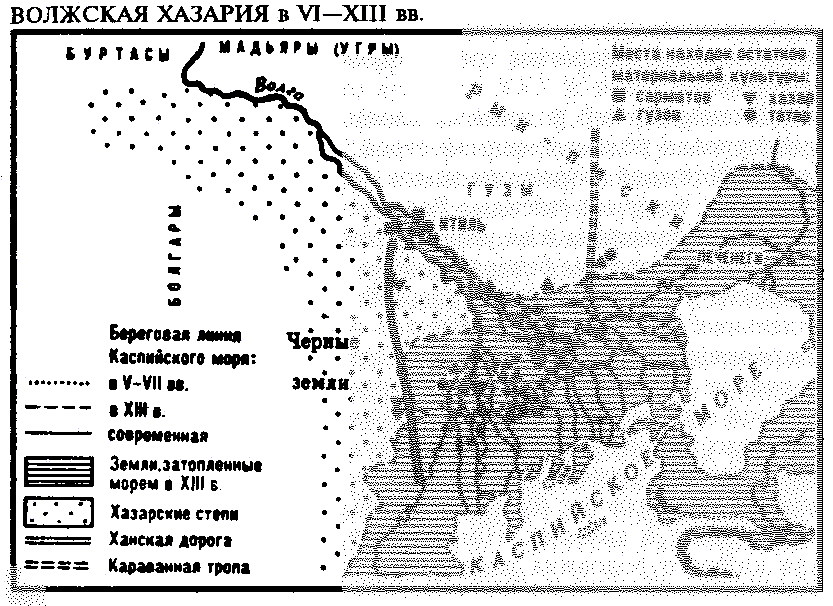 Karta "Volzhskaya Hazariya v VI-XIII vv." (33 KB)