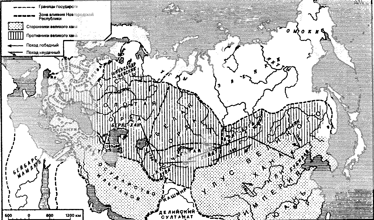 Zato v 40-h godah prizyv k edineniyu knyazej protiv vostochnyh sosedej byl vpolne aktualen. Dve kampanii, vyigrannye mongolami v 1237-1238 i 1240 gg., nenamnogo umen'shili russkij voennyj potencial [†49]. Naprimer, v Velikoj Rusi postradali goroda Ryazan', Vladimir i malen'kie Suzdal', Torzhok i Kozel'sk. Prochie goroda sdalis' na kapitulyaciyu i byli poshchazheny. Derevenskoe naselenie razbezhalos' po lesam i perezhdalo, poka projdut vragi, a ved' chislo mongolov - 300 tys. - obychnoe dlya vostochnyh avtorov desyatikratnoe preuvelichenie. Stol'ko vojsk vo vsej Mongolii ne bylo, a Rus' dlya mongolov byla tret'estepennym (posle Kitaya i Irana) frontom. Sama perebroska stol' bol'shogo chisla lyudej iz Mongolii na Volgu za odin tol'ko god tehnicheski neosushchestvima. Dlya 300 tys. vsadnikov trebovalos' ne men'she milliona konej, kotorye ne mogli idti odnoj liniej. Esli zhe predpolozhit', chto oni dvigalis' eshelonami, to dlya vtorogo eshelona ne nashlos' by podnozhnogo korma. Popolnyat'sya zhe v priaral'skih stepyah mongoly ne mogli, tak kak, vo-pervyh, tak naselenie redkoe, vo-vtoryh, ono bylo vrazhdebno mongolam i, v-tret'ih, eshche v 1229 g. pod davleniem mongolov bezhalo s YAika na Volgu [*132]. Polovcy i alany ottyanuli na sebya okolo chetverti mongol'skoj armii - otryad Munke, prisoedinivshijsya k Batyyu lish' v 1240 g. pod stenami Kieva. Krome togo, ne vse russkie knyazhestva podvergalis' razgromu. Smolensk, Polock, Luck i vse russkie knyazhestva podvergalis' razgromu, zatronuty mongolami, Novgorodskaya respublika tozhe. Koroche govorya, sil dlya prodolzheniya vojny bylo skol'ko ugodno, vazhno bylo tol'ko ugovorit' knyazej, kotorye pochemu-to na ugovory poddavalis' ploho.