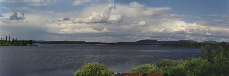 Posle sliyaniya Pechi i Alloya rechka vypolazhivaetsya, stanovitsya znachitel'no glubzhe. Plesy chereduyutsya s nebol'shimi kamenistymi shiverami, na nekotoryh iz kotoryh Tajmen' i KNB prihodilos' po-prezhnemu provodit'. CHetko vyrazhennyh porogov net. Takaya kartina sohranyaetsya do mosta cherez Pechu. Pered mostom konchaetsya territoriya zapovednika. Poyavlyayutsya rybackie stoyanki po beregam. Plesy stanovyatsya dlinnee, shivery vse takie zhe melkie, korotkie. |tot zanudnyj uchastok prodolzhaetsya pochti do Aksozera. Pered Aksozerom shiver stanovitsya neskol'ko bol'she, mnogo horoshih stoyanok, neplohie mesta. Posle Aksozera na chas grebli po absolyutno spokojnoj vode. Razvlekali tol'ko mnogochislennye skvorechniki na sosnah po beregam. Kto ih veshal? Posle razdeleniya Pechi na dve protoki nachinaetsya porog. |to pervyj porog na Peche posle verhov'ev. Dostatochno vysokie valy, struya chetko vyrazhennaya i v osnovnom pryamaya. Priyatnoe razvlechenie posle grebli po spokojnoj vode. Posle vpadeniya Kon'i - ples do Pechozera. Ot vpadeniya shli 1.5 chasa nenapryazhnym tempom. Pechozero nam pokazalos' koroche, chem ono narisovano na karte. Stoyanok na pravom beregu ne nashli. Most v konce Pechozera sgorel. Vstali u dorogi na levom beregu. Stoyanka ochen' gryaznaya - skazyvaetsya blizost' "kovdorskogo trakta". Ot etogo mesta ekipazh KNB ushel peshkom v Verhnetulomskij, t.k. v predydushchij den' dyra v shkure ih lodki dostigla fantasticheskoj dliny - dvuhballonnaya Nerpa prevratilas' v katamaran so vsemi vtekayushchimi i vytekayushchimi posledstviyami.