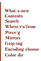 "What-s-new", "Contents", "Search", "Where'r'u'from", "Piece'g", "Mirrors","Gzip-ing", "Encoding choose", "Color dir".