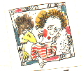 Близнецы развязывают мешок, вылезает Шпион с косыми глазами. Ему дают два яйца.