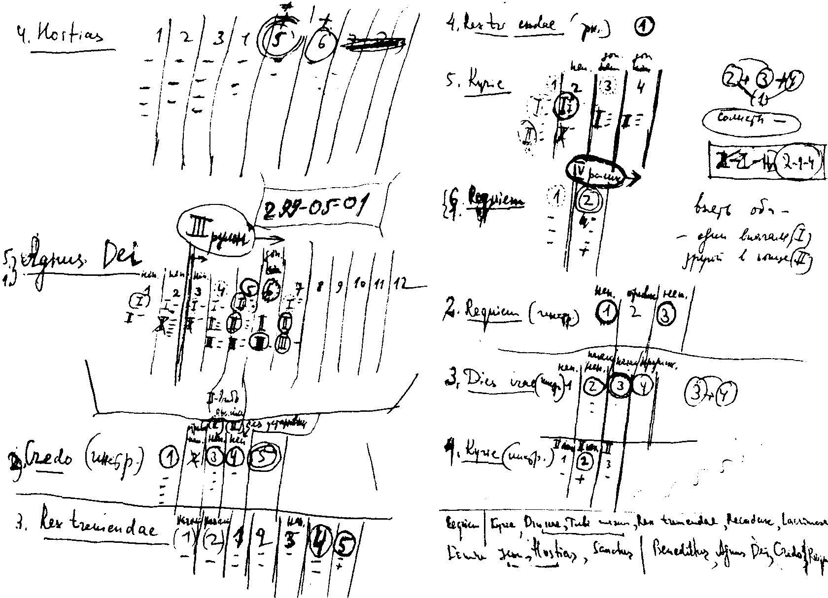 лась не такой, какой обычно бывает - пышной. Тут - тихий Sanctus. До середины этой части, во всяком случае, все мне приснилось, это хорошо помню. Это был подарок. И для меня это было очень важным - я этого сам в себе не оспаривал. Вообще, во всем Реквиеме было для меня что-то необъяснимое. Я не собирался писать его таким языком, и вообще некоторые темы первоначально предполагались для Квинтета.