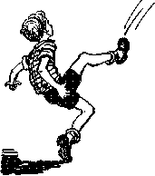 Встречные пешеходы останавливались, не зная, надо им ловить Толю или не надо. Один гражданин хотел было его схватить, но Толя ловко шмыгнул у него под рукой и, повернув с тротуара, помчался по мостовой. Здесь ему не угрожали встречные пешеходы и он мог развить гораздо большую скорость. Дарья Семеновна тоже побежала по мостовой, но тут же чуть не угодила под грузовую машину.