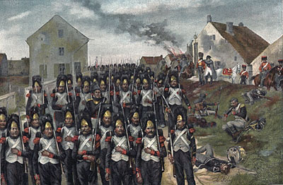 На другой день он повернул от Шампобера к Монмирайлю, где стояли русские и пруссаки. Битва при Монмирайле, происшедшая 11 февраля, кончилась новой блестящей победой Наполеона. Неприятель потерял из 20 тыс., сражавшихся под союзными знаменами в этот день, около 8 тысяч человек, а Наполеон меньше 1 тысячи. Союзники поспешно отступали с поля битвы. Немедленно после этого Наполеон устремился к Шато-Тьери, где стояло около 18 тысяч пруссаков и около 10 тысяч русских. лЯ нашел свои сапоги итальянской кампании╗,- воскликнул Наполеон, вспомнив свои молниеносные победы 1796 г.
