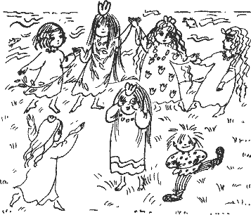 за ними. Поднималось солнце. Корыто уткнулось в берег, а русалки закричали: