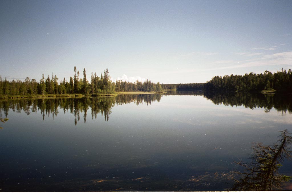 Погода. По результатам почти месячных в сумме наблюдений в 1995 и 1999 гг. можно сделать следующее обобщение. Для июля-августа на Кольском характерна дневная температура около 15░С и ночная около 6░ (а один или два раза - до нуля). В 1999 г. днем температура поднималась до 23░С. Дожди редки - раз в два-три дня. Грозы - еще реже. Духоты нет в помине. Безоблачность является исключением, и небо радует глаз разнообразными расцветками - от свинцово-черных туч (1995) до кучевых и перистых облаков самых причудливых форм и размеров (1999). Иными словами - по нормам средней полосы на Кольском всегда стоит преддождевая погода.