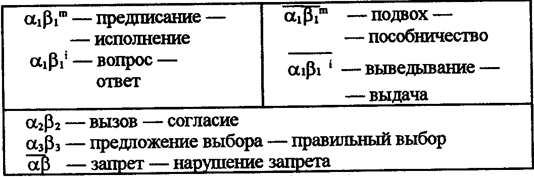 Обозначим парные функции, относящиеся к правилам поведения, греческими буквами ар в отличие от латинских АВ, аb, относящихся к подвигам. Знаком отрицания над буквой укажем на негативную форму (испытание не дарителем, а вредителем), индексами т и