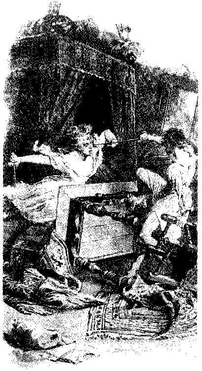 перевернутой мебели, схватив кинжал, миледи, как демон мести, кидалась на
