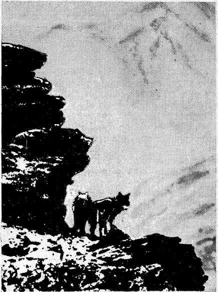 Неведомо для нас самих время отсчитывало последние дни целой эпохи в нашей жизни. Пора ледолома быстро приближалась. И вот однажды на льду появились лужи, а назавтра вместо льда мы увидели текущую воду. Леди любила текущую воду, которой она не видела с сентября прошлого года. Она подолгу задерживалась у воды, ходила в ней взад-вперед, глядя на нее сверху вниз, как на живое существо. Она поднимала лапу и трогала воду, знакомясь с нею. О, это ненасытное волчье любопытство! Приходилось окликать ее, чтобы идти дальше. Она могла не отрываясь смотреть на воду и пять, и десять минут подряд. На следующий день мы услышали на реке одинокий, словно перекатывающийся взад и вперед, рев -- это уже на все лето. Снежная рябь на озере опала. Ворон, стоявший один-одинешенек на его голубом льду, наклонил голову и напился из лужицы. Энди привез почту, теперь мы увидим его лишь по окончании ледолома. Он рассказал, что один ДС-3 и одна "Сессна" уже покалечились при посадке на рыхлый лед к югу от хребта, С самолета очень трудно заметить колдобины, когда рулишь по льду. Прежде чем отбыть, он пролетел с Крисом над дальним концом волчьей тропы, уходящей к Эйприл-Крику. Там были густые заросли ивняка и множество заячьих троп. Это еще более утвердило Криса в предположении, что здесь должно быть волчье логово. Поскольку от нас Энди летел с почтой прямо на Анактувук-Пасс, он обещал, если удастся, сегодня же нанять там эскимоса и тотчас доставить его к нам вместе с собаками. Для поисковой экспедиции на Эйприл-Крик Крису были нужны вьючные собаки. Вечер прошел весело, впоследствии мы с удовольствием вспоминали о нем. Мы читали письма и вдруг обнаружили, что Курок и Леди уже вернулись домой с прогулки и лежат на вершине горы. Они махали хвостами, лезли целоваться, приникали к земле в полном волчьем приветствии и улыбались. Затем они дали нам незабываемое представление, а мы смеялись и хлопали в ладоши, поощряя их к веселью. В этой чисто волчьей игре было много возни. Волки толкались, снисходительно похлопывали друг друга хвостами по 203 спине, клали лапу на шею друг другу. Но главным в ней были прыжки. Леди прыгала вбок на целых шесть футов. Она прыгала вертикально, по-кошачьи выгибая спину. Она крутилась в воздухе так, словно ее передние лапы покоились на невидимом вращающемся диске. Потом она ложилась на землю и снизу вверх заглядывала в глаза Курку, обняв его лапами за шею. Белки ее глаз сверкали, когда она озоровато косилась на него, кончик носа пуговкой выглядывал между поднятыми губами. Волки не были голодны, но Леди все же вопрошающе подошла к запасному входу, и Крис дал каждому по куску сушеной рыбы; это был скорее символический жест, чем кормежка. Уходя от Криса с куском рыбы в зубах, Леди взглянула на него снизу вверх ясными, серьезными глазами. Это был пустяк, но он произвел на нас глубокое впечатление. Именно пустяки, игра пустяками и делают волков та кими симпатичными, -- сказал Крис, меж тем как волки за прятывали рыбу. -- Они очень милые твари. У них очень развито чувство... -- Я запнулась, подыски вая определение для какой-то совершенно несобачьей, чисто волчьей стороны их натуры. Отношений, -- сказал Крис. Наутро, встав в пять часов, чтобы выйти вместе с ними в обычное для них время, он был очень разочарован, увидев, что их уже нет. Он вышел в шесть, захватив с собой кинокамеру. Около