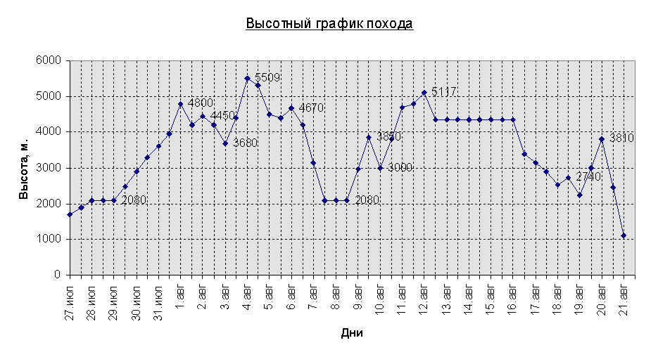 Высотный график похода. 9