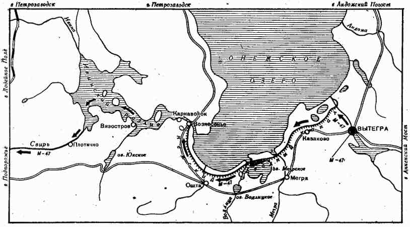 rodami Vytegra i Podporozh'e, a s pravogo -- s Petrozavodskom.