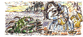 Kalevala. Mat' Ahti s grebnem v rukah.