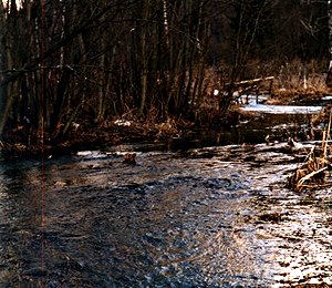 Reka techet snachala po smeshannomu berezovo-sosnovomu lesu,