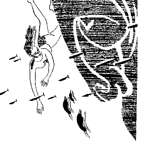 clouds stood a girl, sunburned to the colour of bronze. The wave rolled