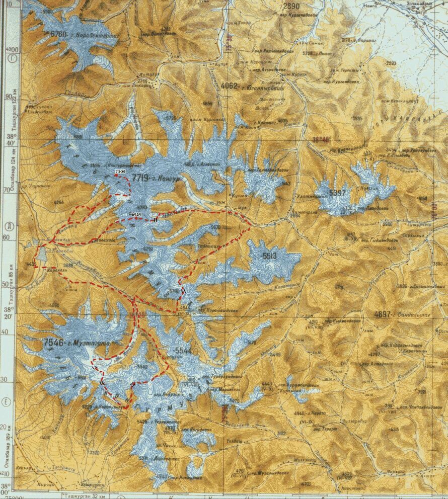 (4810,3А,п.п.) - траверс пика Кызылсель (6525,3Б,п.п.) - р. Яманджар - пер.