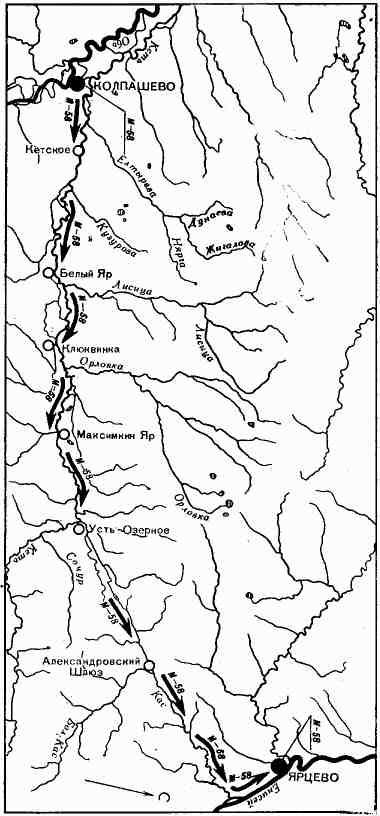 ленки" до села Усть-Озерное -- начала активной части маршрута. Кеть очень извилис-