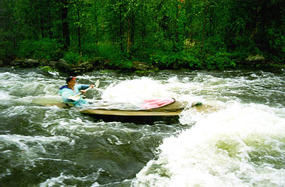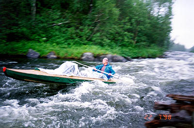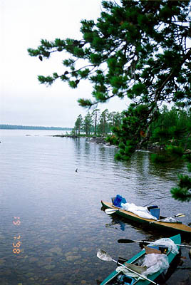 с Галиной собираемся, загружаем свои и Пашкины вещички в байдарку и плывем к